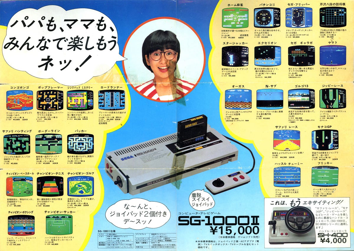 Mark III è la nuova console di Sega per il Giappone! Il nome parla chiaro: si tratta del terzo hardware casalingo da gioco… in altrettanti anni. La presa di Nintendo sul mercato giapponese, con Famicom (l’equivalente del NES occidentale), ha già costretto Sega a rivedere e aggiornare la sua proposta più di una volta. Con Mark III Sega riesce a portare nei negozi un concentrato di tecnologia di tutto rispetto, che oltretutto mantiene la compatibilità con i giochi già disponibili per SG-1000 e SG-1000 II (le macchine già distribuite nel 1983 e nel 1984).